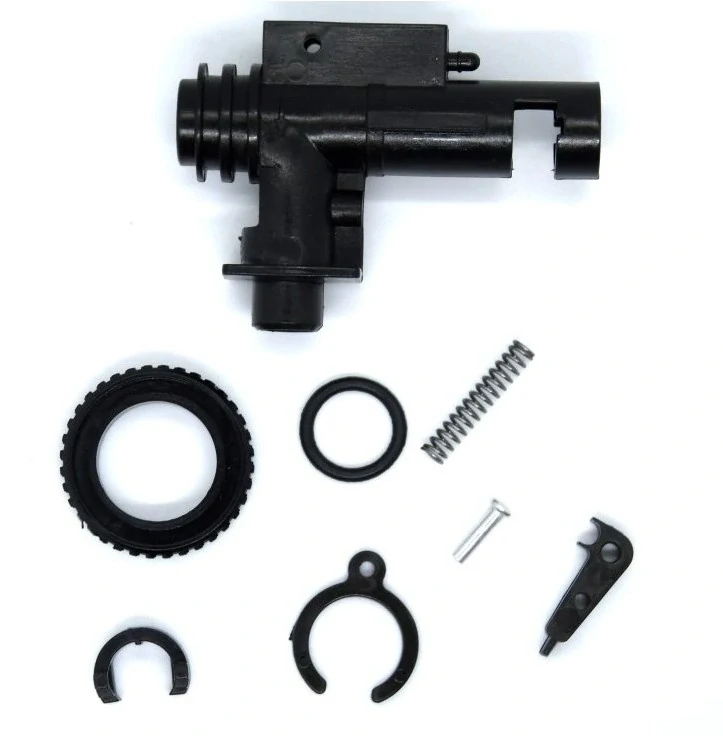 Hop-up komora je vyrobena z odolného polymeru pro airsoftové zbraně typu M4/M16. Sada obsahuje distanční prvky, šrouby, ozubená kola, pružiny a svorky.