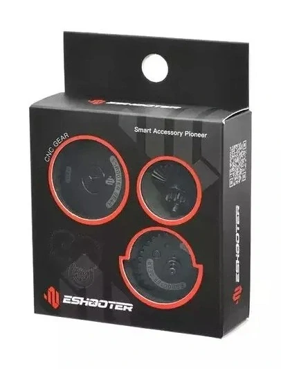 Ocelová převodová sada Eshooter 18:1 je určena pro běžnou modernizaci a servis airsoftových mechaboxů. Ozubená kola jsou obráběna CNC, což zajišťuje přesné uložení zubů a hladký chod. Povrchová úprava černým oxidem spolu s vytvrzováním parou zvyšuje odolnost proti opotřebení a korozi.